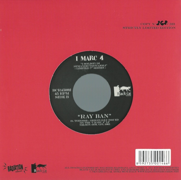 The 1970 composition “Ray Ban,” performed by I Marc 4, was also reissued in 2013. The Black Cat Records’ hand-numbered 45 is one of a series of classic singles issued in vinyl.