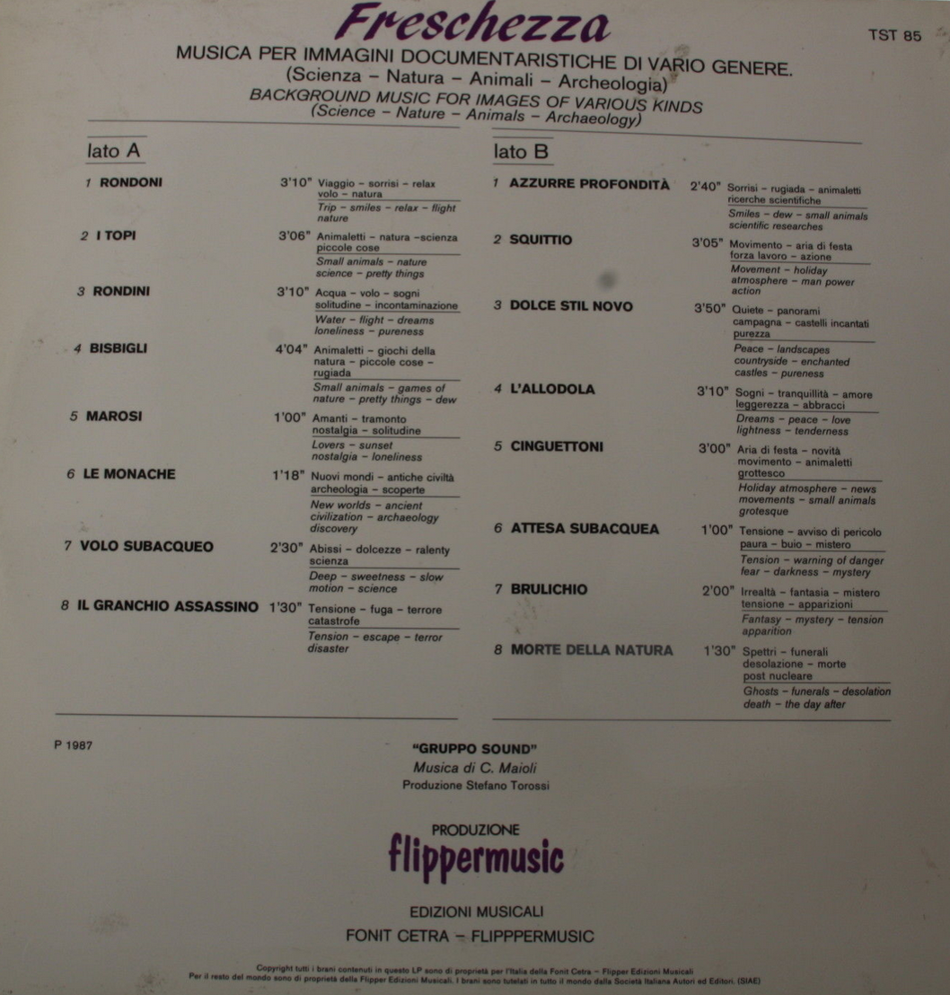 Gruppo Sound (Claudio Maioli) – Freschezza: Musica per immagini documentaristiche di vario genere (Scienza – Natura – Animali – Archeologia) (1987) Fonit Cetra/Flippermusic
