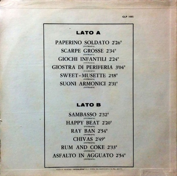 More than half of the Fotriafa compositions on the 1970 I Marc 4 LP have been reissued in compilations released in recent years including “Ray Ban” and “Suoni armonici” on La Douce/Irma’s Suoni Moderni: The Best of Marc 4 (1998) in LP and CD and “Happy Beat,” “Rum and Coke,” “Asfalto in agguato” and “Chivas” on Black Cat’s The Psych Jazzy Beat of I Marc 4 (2006) in CD.