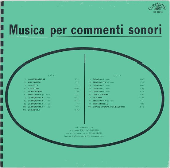 Musica per commenti sonori (1971) Costanza Records [Italy] (CO 10010) LP